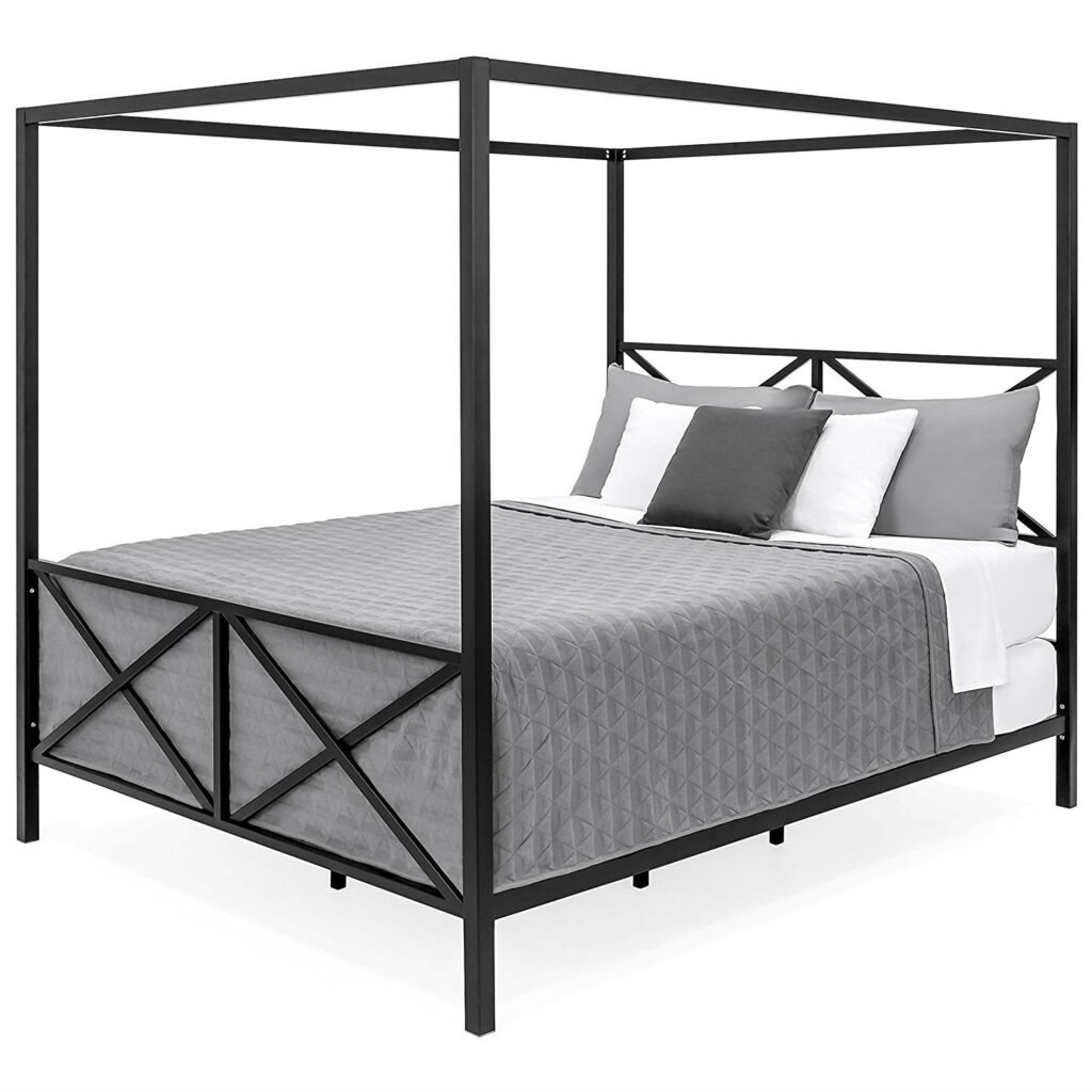 Queen size Modern Industrial Style Canopy Bed Frame in Black Metal Finish