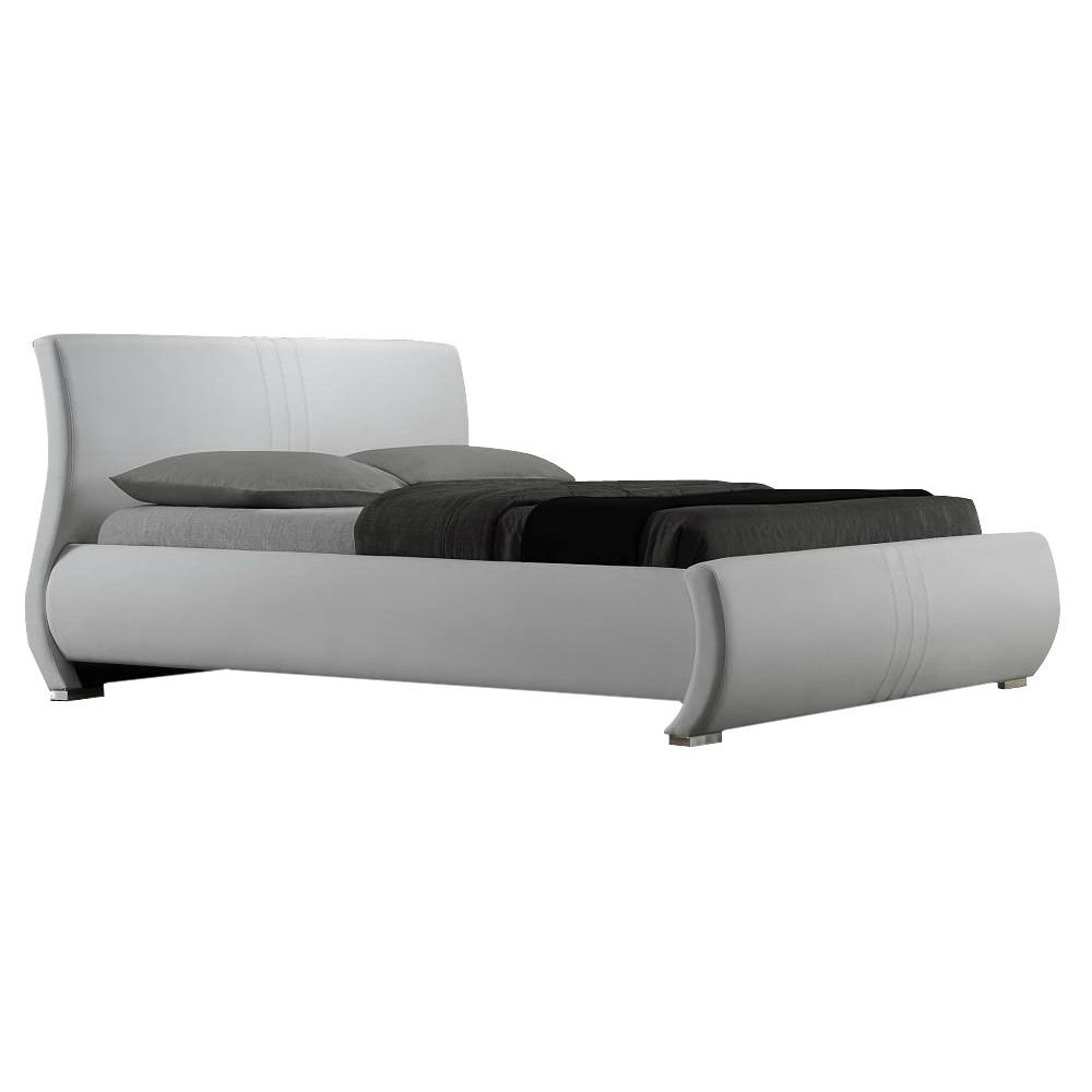 Queen size Modern White Faux Leather Upholstered Platform Bed