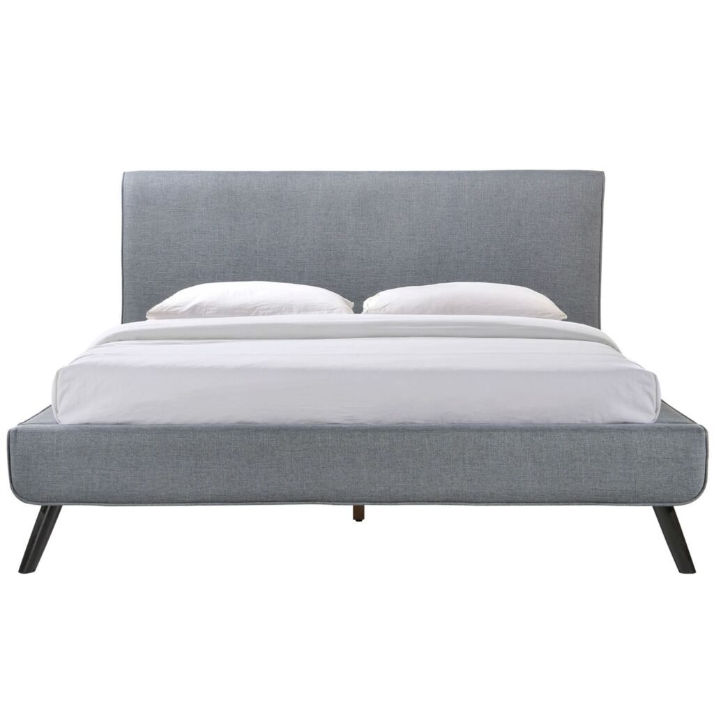 Queen size Mid-Century Platform Bed Frame with Gray Upholstered Headboard
