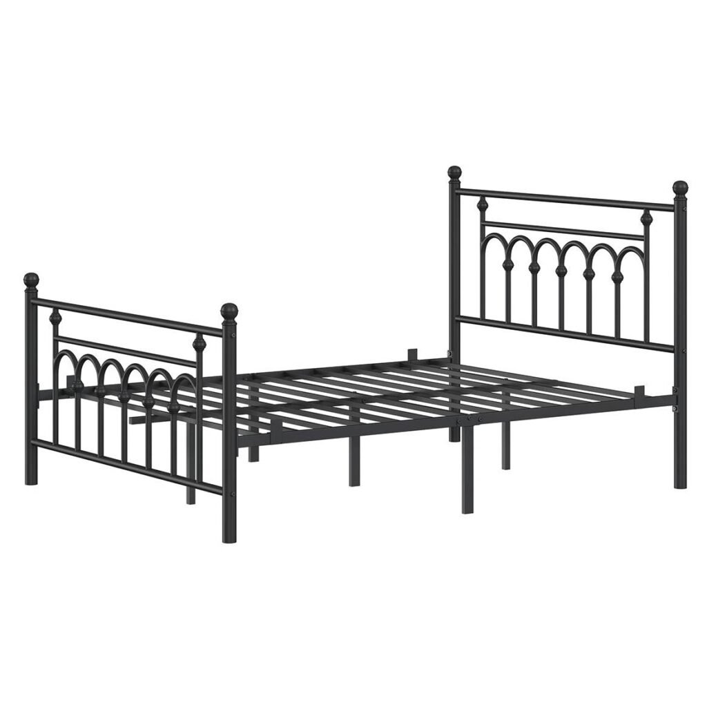 Queen Size Victorian Black Metal Platform Bed Frame with Headboard Footboard