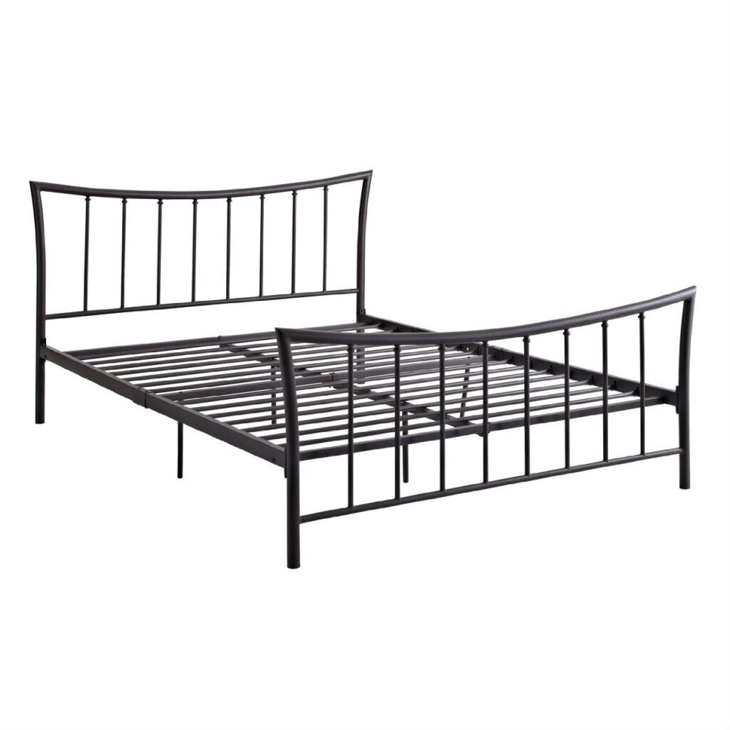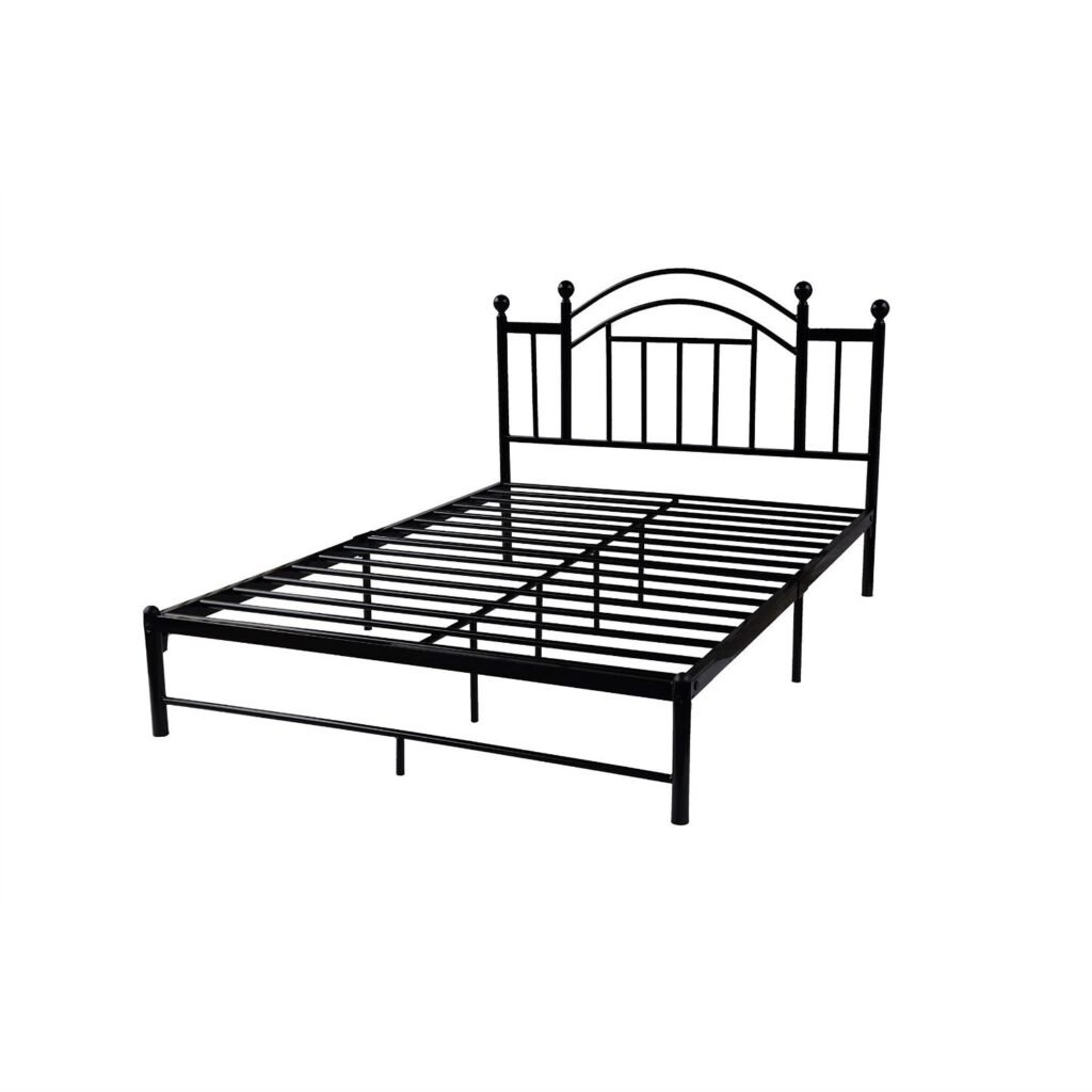 Queen size Black Metal Platform Bed Frame with Vintage Post Style Arch Headboard