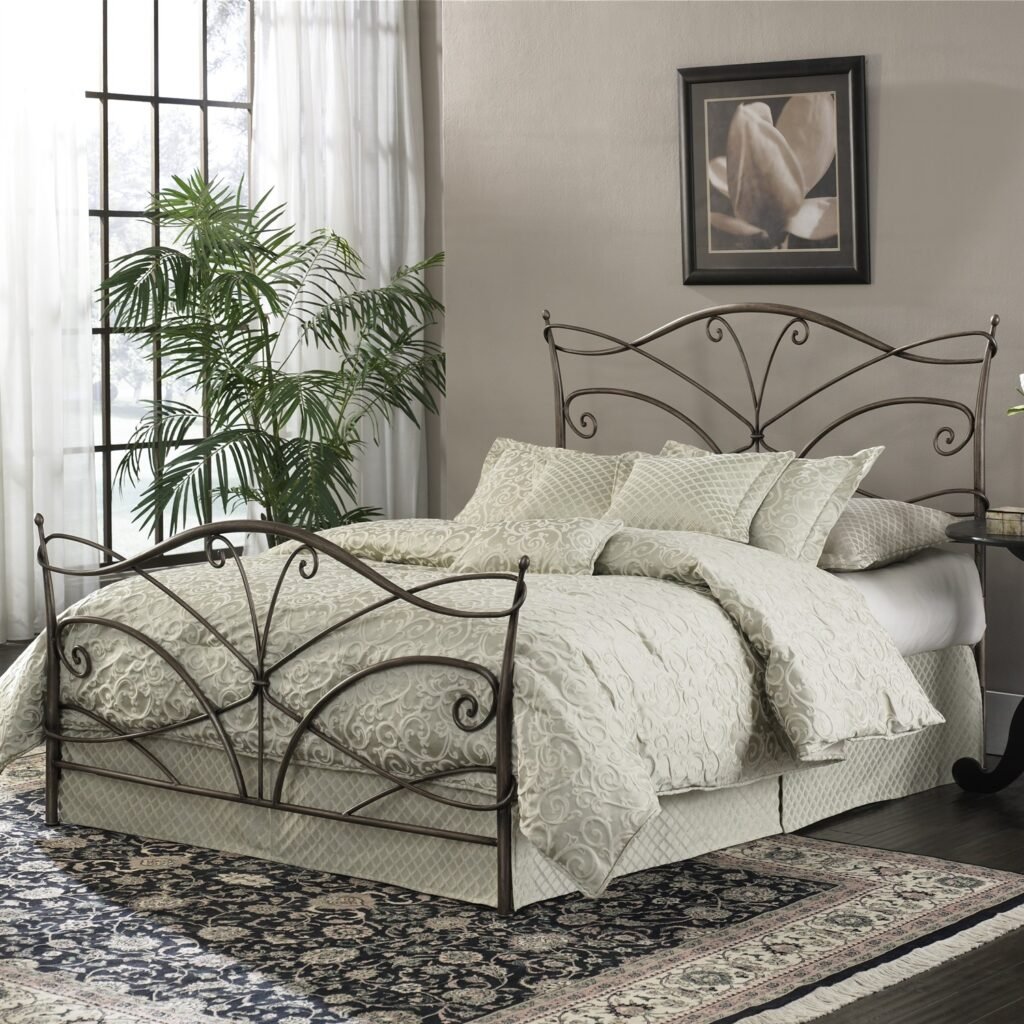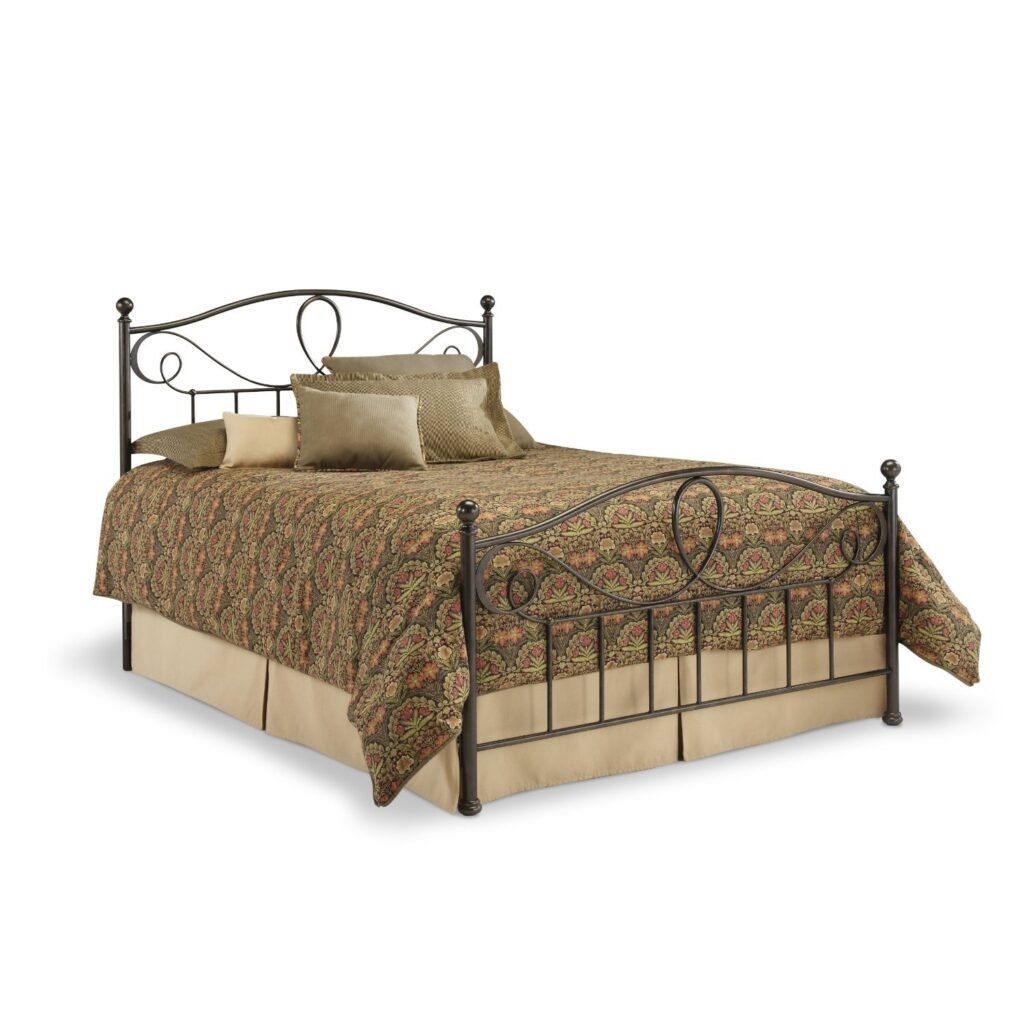 Queen size Metal Bed with Headboard and Footboard in Hammered Brown