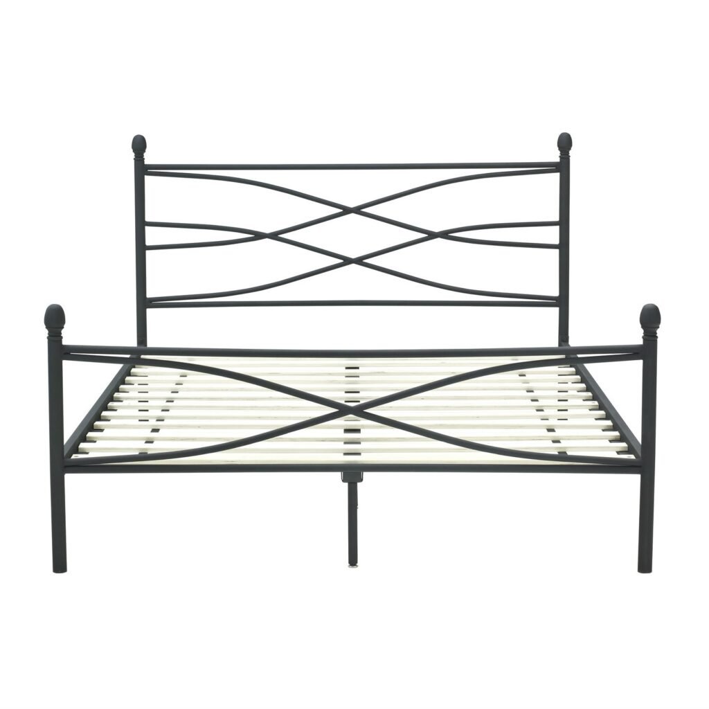 Queen size Metal Bed with Headboard and Footboard in Matte Black