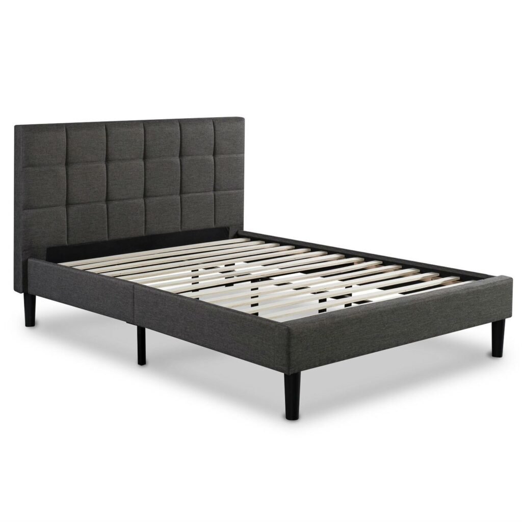 Queen size Dark Grey Upholstered Platform Bed Frame with Headboard