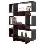 Modern 63-inch high Bookcase Geometric Display Shelf in Espresso Wood Finish