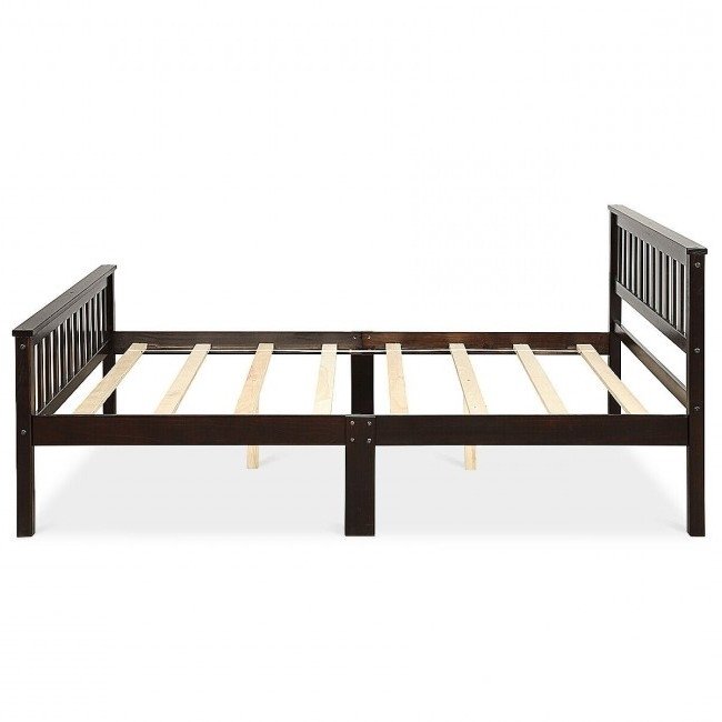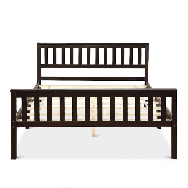 Modern Espresso Solid Pine Wooden Platform Bed Frame – Full Size