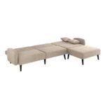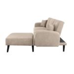 This Modern Mid-Century Beige Linen Upholstered Sleeper Sectional Sofa would be a great addition to your home. It has upholstered in hand picked linen fabric on wooden frame with pleated details on back rest.