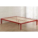 • Queen Modern Red Metal Platform Bed Frame with Wooden Slats