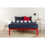This Queen Modern Red Metal Platform Bed Frame with Wooden Slats features wooden slats that provide strong support for your memory foam, latex, or spring mattress. 14 inches high with 12 inches of clearance under the frame for plenty of under bed storage space. Openings in two of the legs allow for attaching a headboard to this platform bed. The Queen Modern Red Metal Platform Bed Frame with Wooden Slats provides stylish and strong support for your mattress.