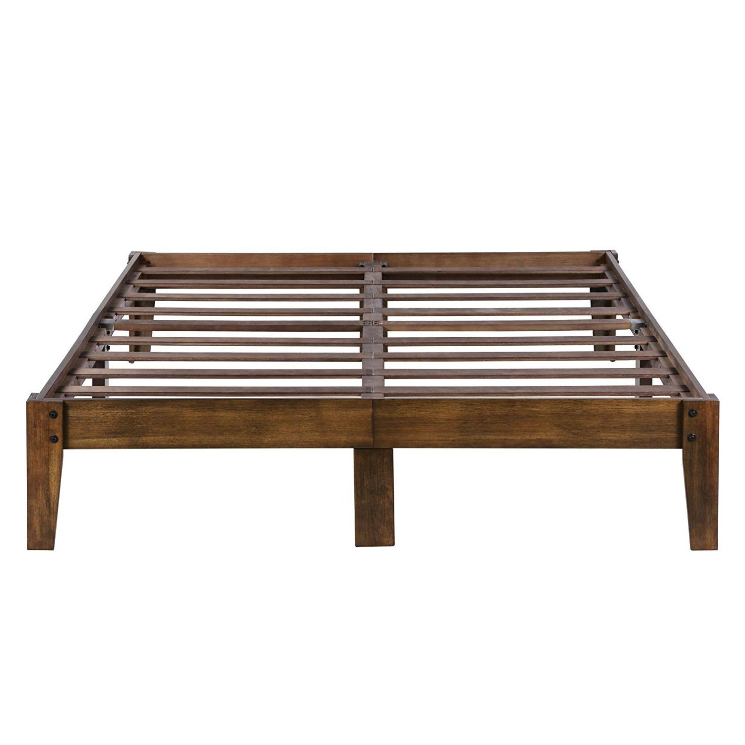 This Queen size Solid Wood Platform Bed Frame in Brown Natural Finish would be a great addition to your home. There is no box spring is needed with this solid wood frame. This durable bed frame is designed to replace both your bed frame and mattress foundation. The wood bed frame is a timeless design that will be compatible in your room for many years. Forget the weak squeaking.