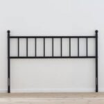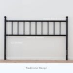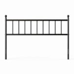 This Queen size Traditional Farmhouse Headboard in Matte Black Metal Finish helps complete your bedroom ensemble, with its sleek shape and traditional design. It’s made from metal in a black matte finish, and it has open vertical slats and decorative finials that fit well within your space — no matter the style of your room or its color palette. This headboard is 40″ tall when measured with both legs. Plus, you can easily mount it to your bed frame — all hardware and plates included.