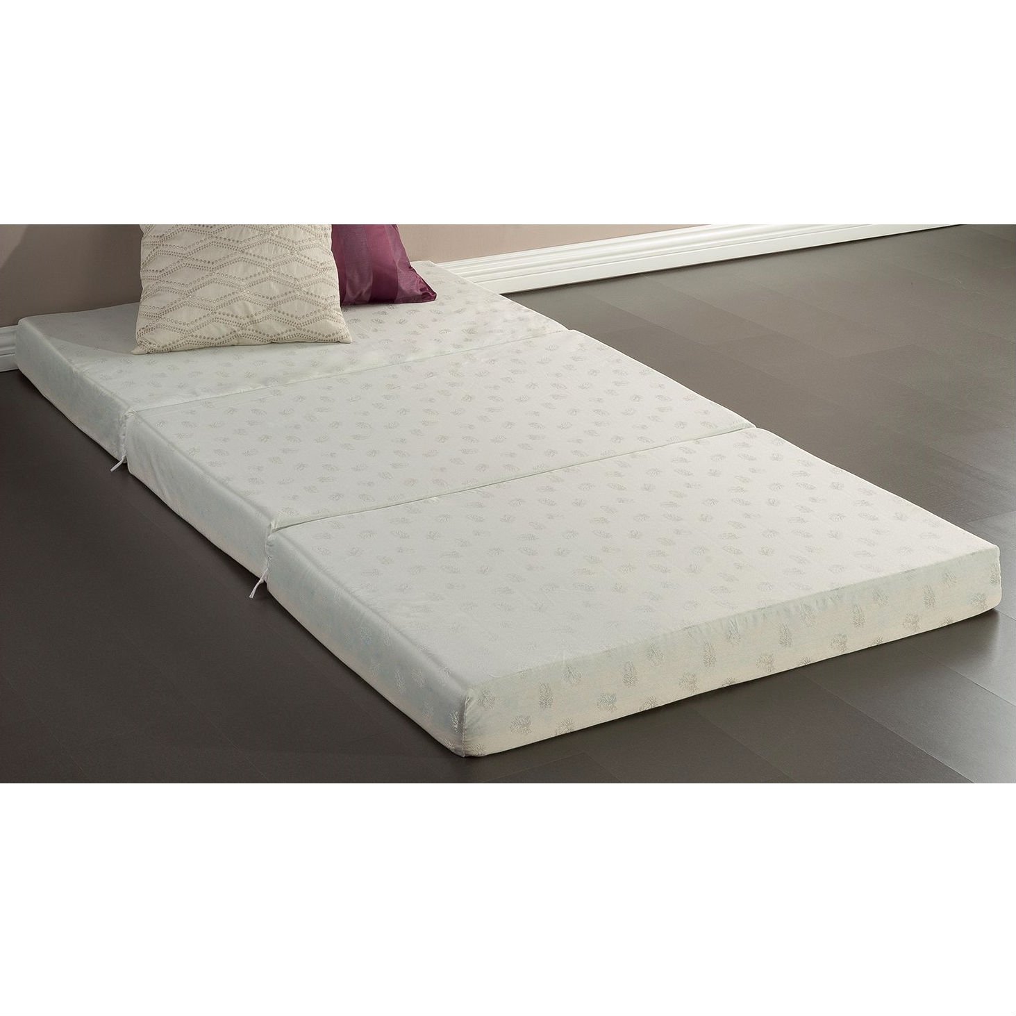 This Twin size 4-inch Thick Memory Foam Guest Bed Mat Folding Mattress is comfortable and convenient. Easy to transport and store with three foam layers that work together for maximum comfort. Please open your package within 72 hours of receipt and allow 48 hours for your new mat to return to its original, plush shape. Worry free 1 year limited warranty.