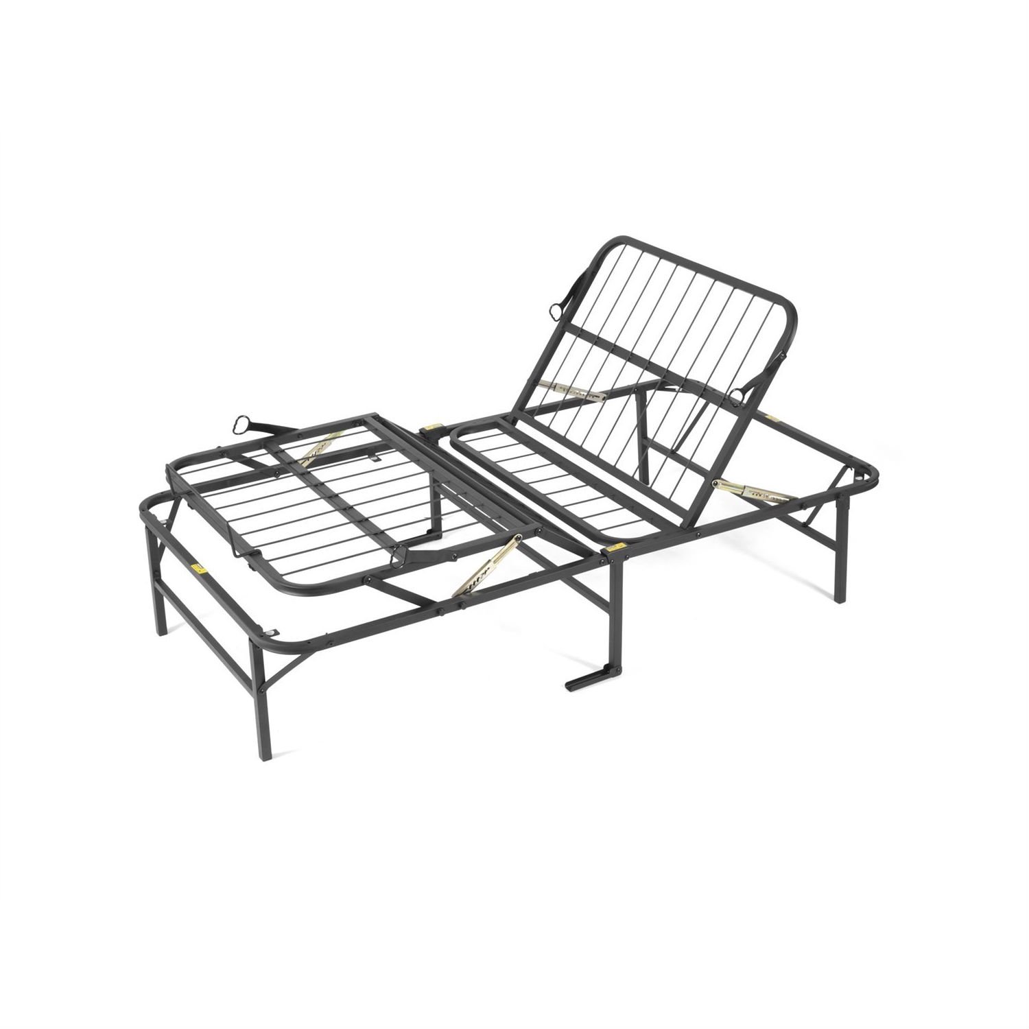 This Twin size Manual Adjustable Platform Bed Frame with Under Bed Storage Space brings a full range of flexibility to the original foldable foundation, designed to eliminate the traditional box-spring. We’ve carefully engineered the frame with 80° of articulation at the head and 30° at the foot for adjustable support. All of our foundations have a simple assembly process that don’t require additional tools as the frame unfolds to its full size. To support the portability of the design, we use heavy duty steel at a thicker gauge than standard metal frames to ensure a solid foundation for all mattress types, and especially well suited for latex and memory foam. Other details like recessed wire supports and capped feet protect your floors and bedding, while a hypoallergenic powder-coated finish provides resistance to bedbugs and dust mites.