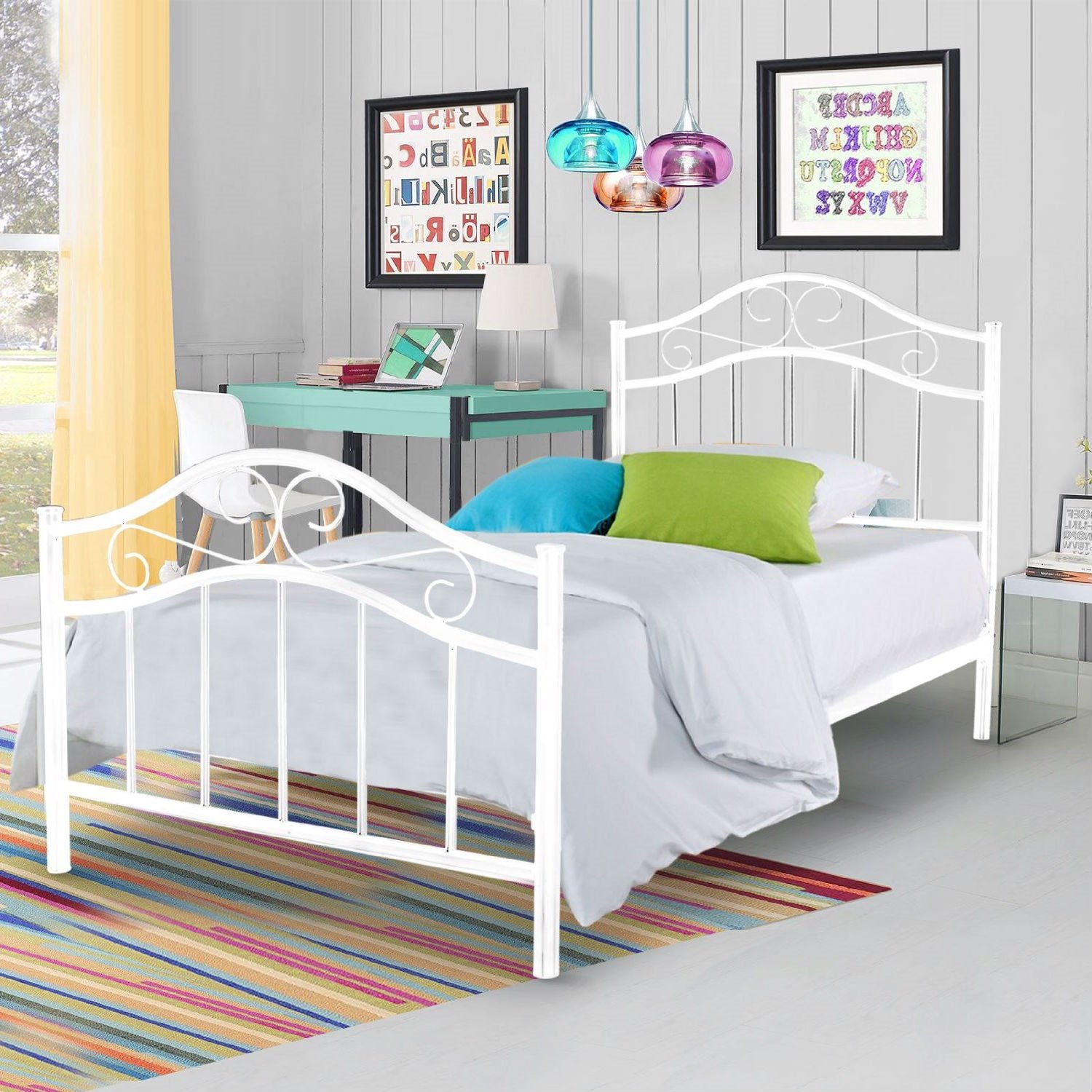 This Twin size Metal Platform Bed Frame with Headboard and Footboard in White can match any other furniture that you already have! It is a practical space-saving solution for small bedrooms and is appropriate for use by children or for placing in a guest bedroom.