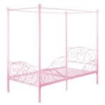 • Twin size Sturdy Metal Canopy Bed in Pink