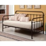 This Twin Sturdy Metal Daybed with Rounded Back and Sides in Dark Bronze Finish offers comfort and style with its spindle design and full metal construction. The powder coated finish comes in dark bronze or vintage white, ensuring a lovely pairing with any bedroom décor. Easily place this in any guest room and accommodate any unexpected overnight guests within seconds. Mattress ready, with a built-in metal slat support. Finished in Dark Bronze, available in a variety of color options. Matching trundle available separately. Made in Vietnam, assembly required. Overall dimensions: 41.75″L x 81″W x 48.38″H. All décor and items are not included in this offer unless specified.