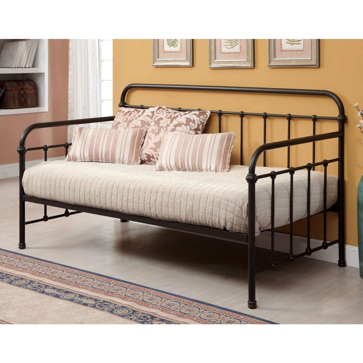 • Twin Sturdy Metal Daybed with Rounded Back and Sides in Dark Bronze Finish