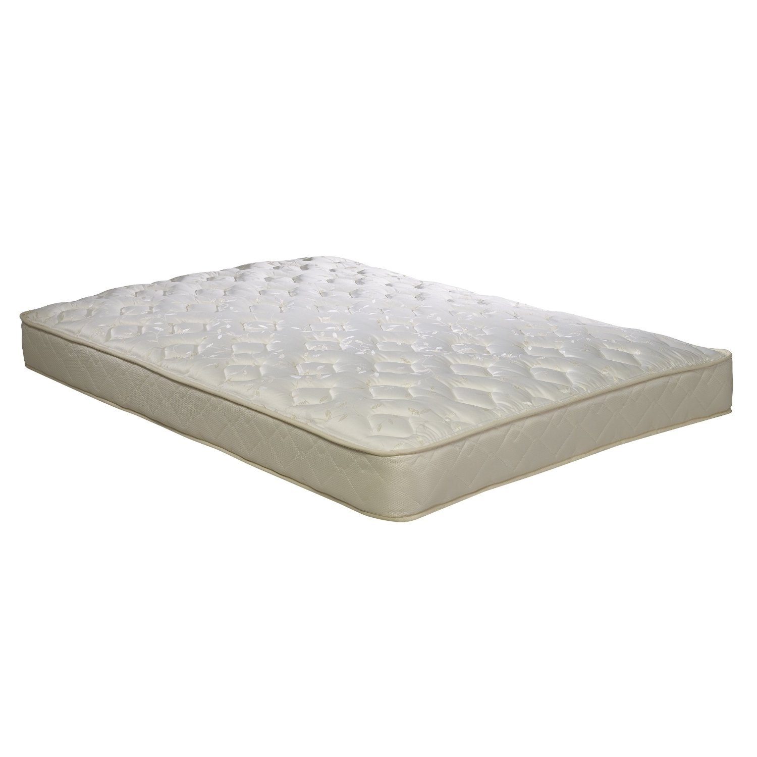 This Twin XL size 9-inch Thick Pillow Top Innerspring Mattress would be a great addition to your home. The Wolf family has been making mattresses in America’s heartland for over 137 years and five generations. The Sleep Innovations line of mattresses give you all the features of more expensive mattresses. Designed and engineered to give you comfort and support using natural cotton fibers, high density foam, and a 312 coil Bonnel Innerspring system. The Jacquard Damask quilt is filled with cotton at the top to allow your body to breath and help regulate body temperature and contains an extra base layer of foam for extra resilience. Natural un-bleached cotton contains no dyes. The mattress is rolled in plastic and boxed for protection during shipment; the small size of the package is also helpful when moving it into your home by making tight spaces easy to navigate. Product carries a 5 year warranty. Wolf Sweet Dreams Since 1873.